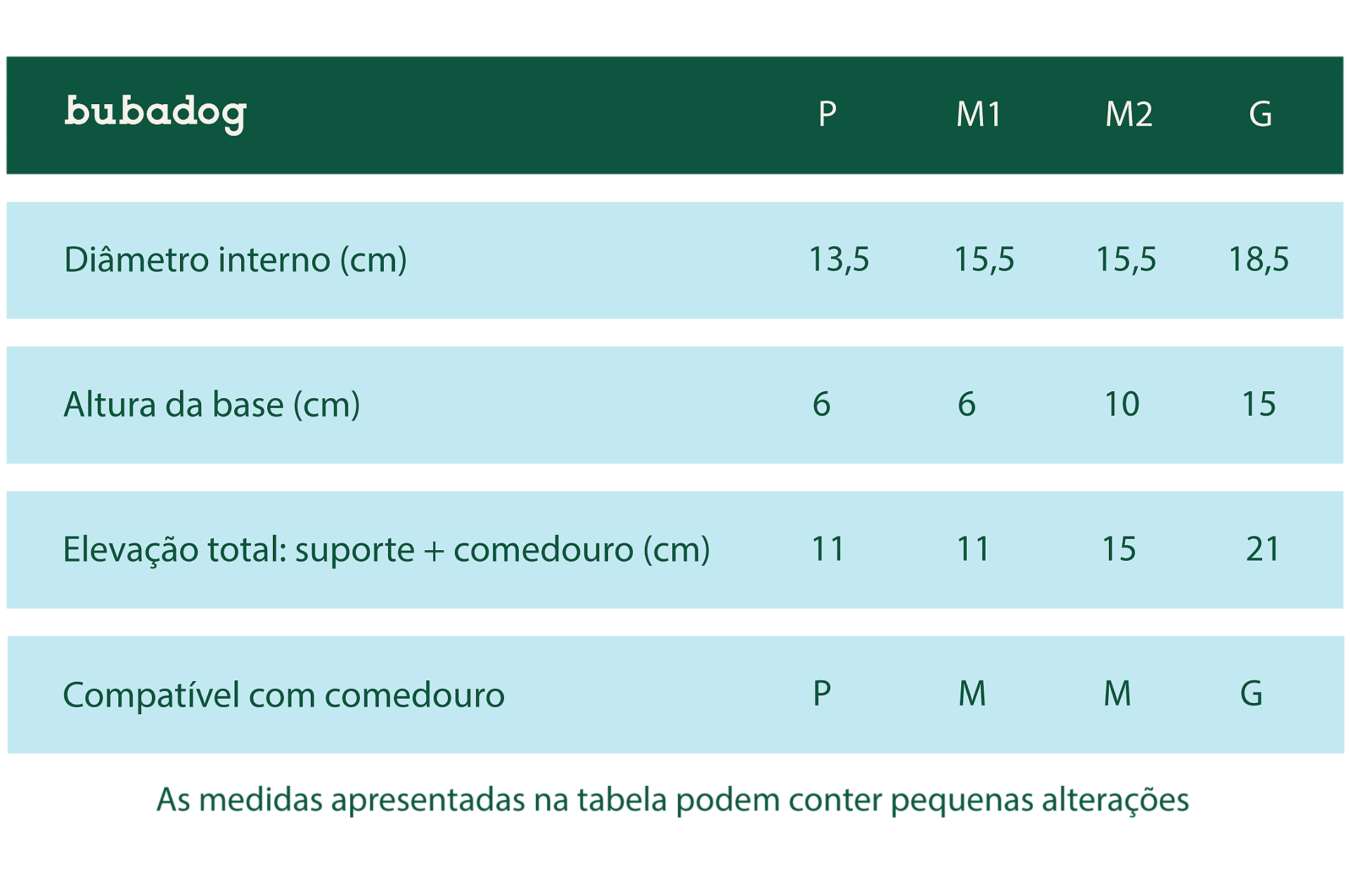 Suporte compatível com os comedouros de cerâmica para cães Bubadog. Consulte os tamanhos disponíveis e a compatibilidade no Guia de Medidas.